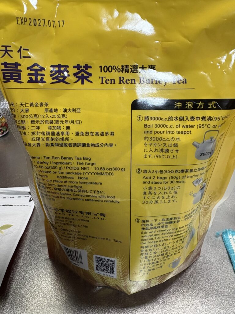 台湾の有名なお茶ブランド「天仁茗茶」の麦茶。
